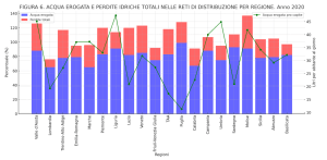 - Le perdite complessive nella rete idrica italiana raggiungono il 42% dell'acqua immessa nei tubi, con alcune zone del Mezzogiorno che registrano perdite fino al 50%.